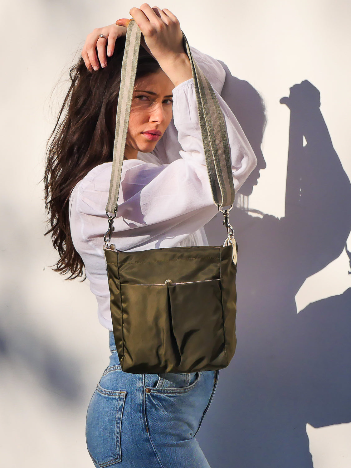 Sac Arya nylon satiné bi-couleur avec empiècement cuir pleine fleur doré. Porté bandoulière, une glissière métallique pour le fermer, à intérieure une poche zippée, une poche extérieure à pression, large bandoulière. Arya est à la fois léger, pratique et confortable à utiliser. Existe dans 4 combinaisons bi-couleur.