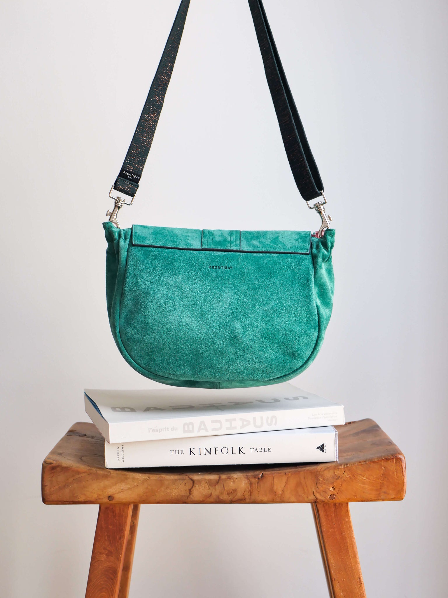 Luxe et soyeux, un mélange chatoyant de couleurs vives. Inspiré des années 70, notre sac à rabat en daim Janis réinvente le passé tout en conservant le style classique vintage. Porté en bandoulière ou à l'épaule, il est doté de deux poches intérieures, d'une bandoulière ajustable et se ferme avec un aimant.