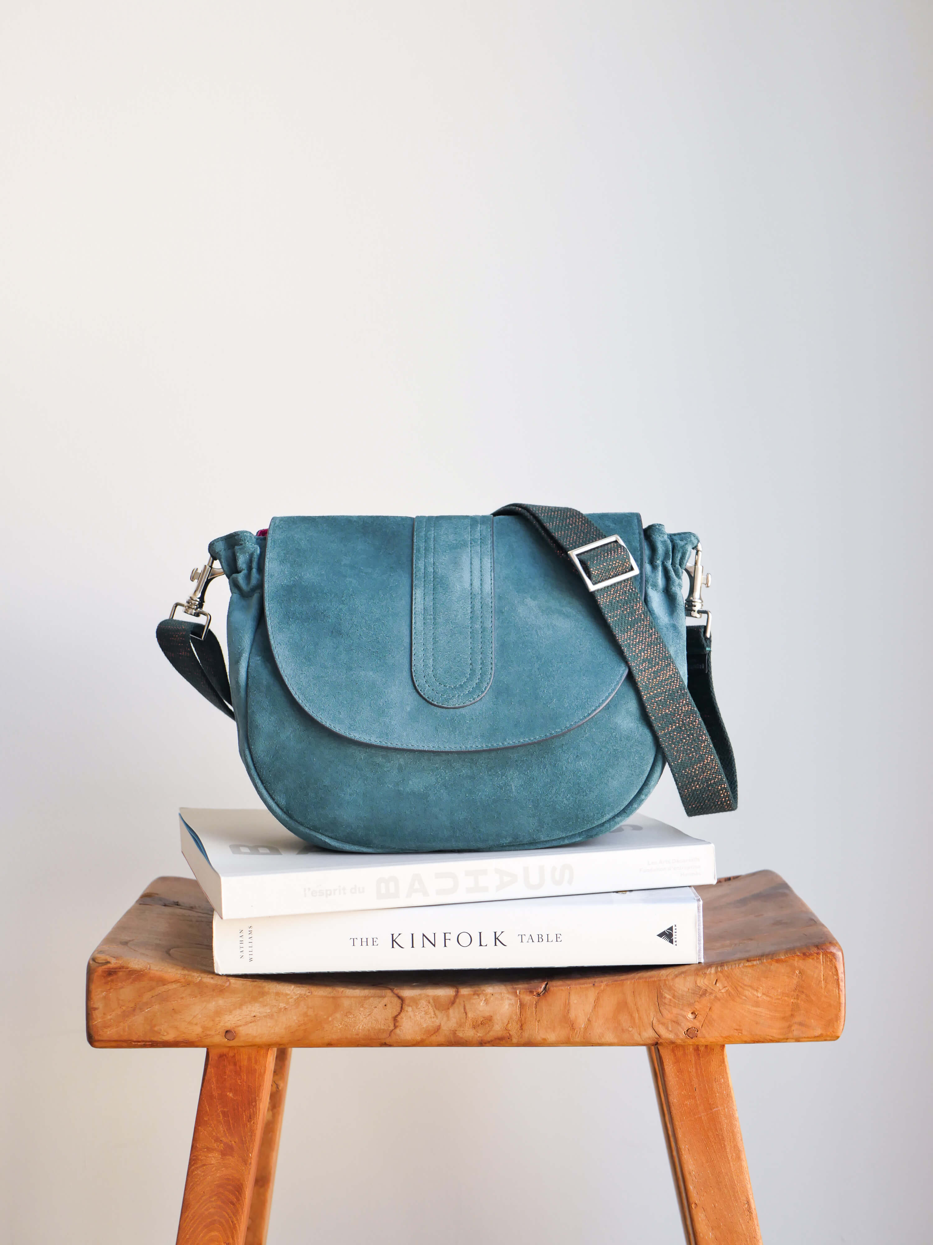 Luxe et soyeux, un mélange chatoyant de couleurs vives. Inspiré des années 70, notre sac à rabat en daim Janis réinvente le passé tout en conservant le style classique vintage. Porté en bandoulière ou à l'épaule, il est doté de deux poches intérieures, d'une bandoulière ajustable et se ferme avec un aimant.