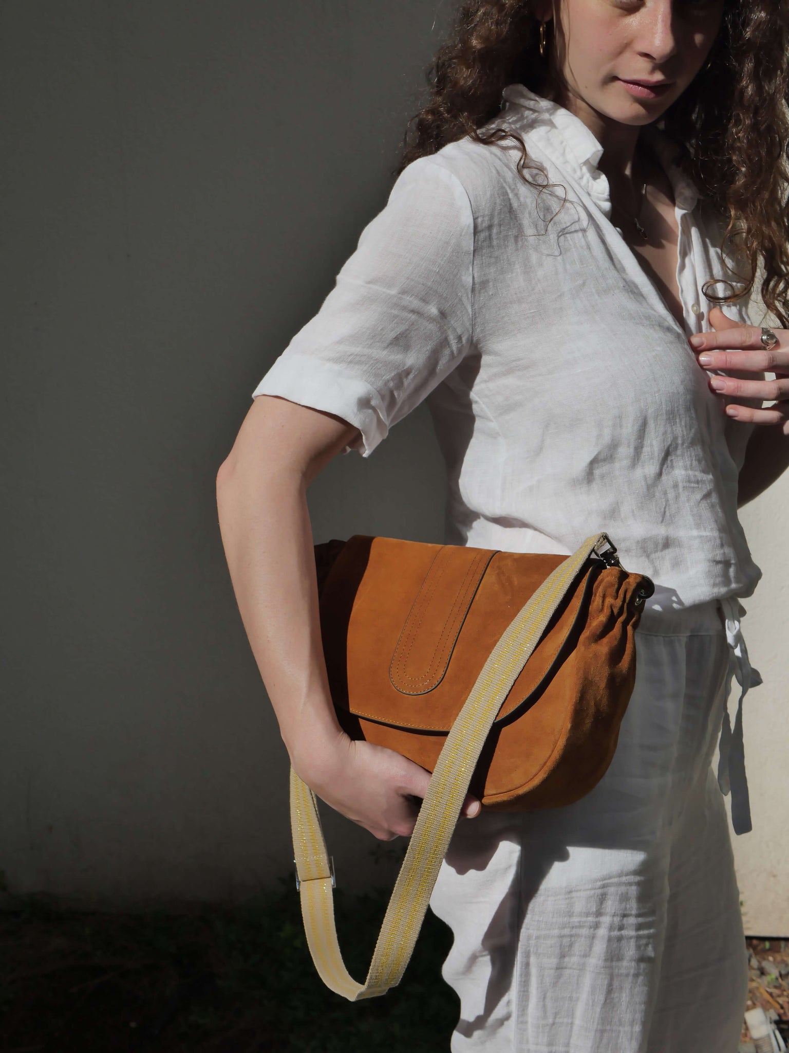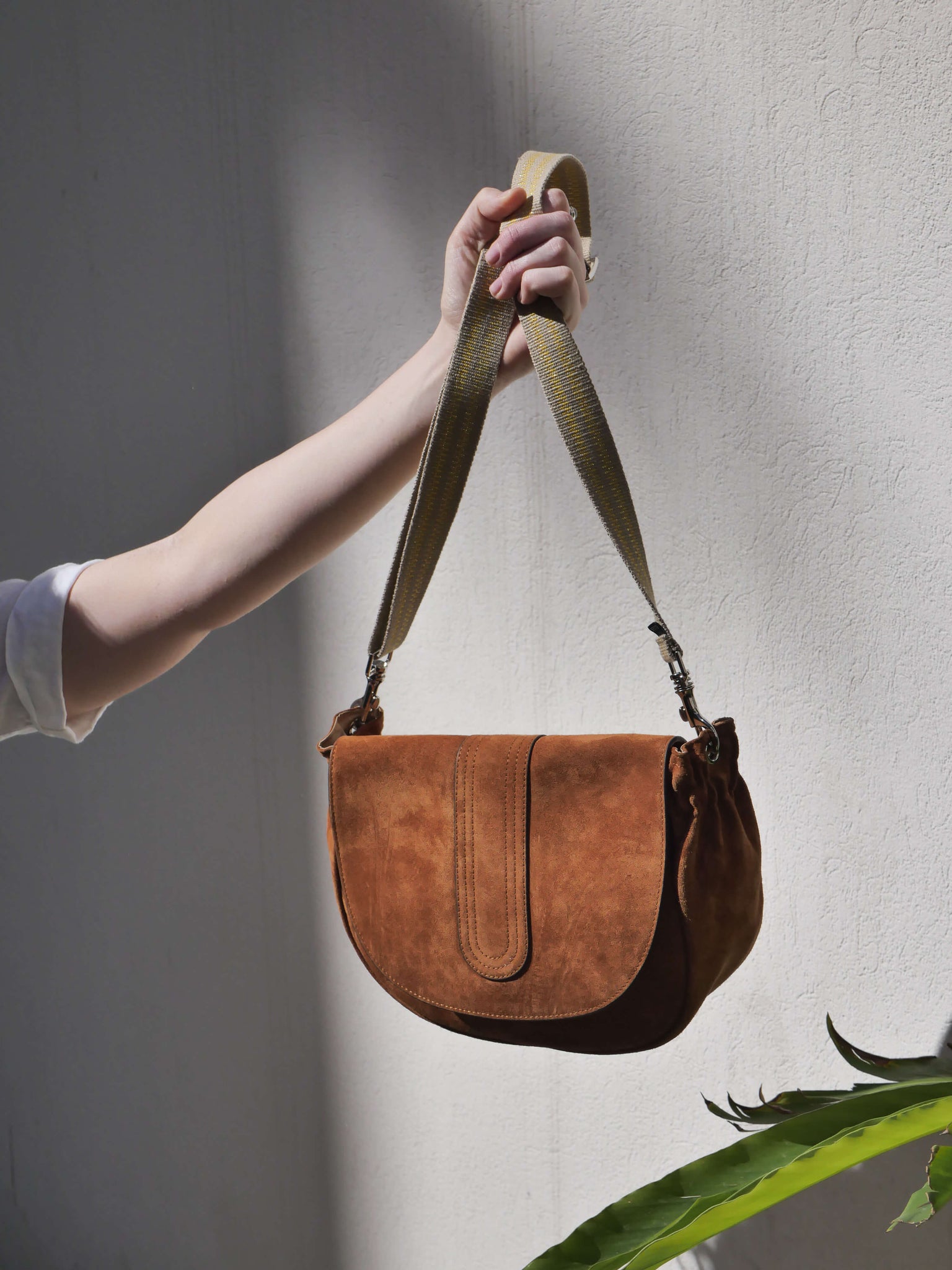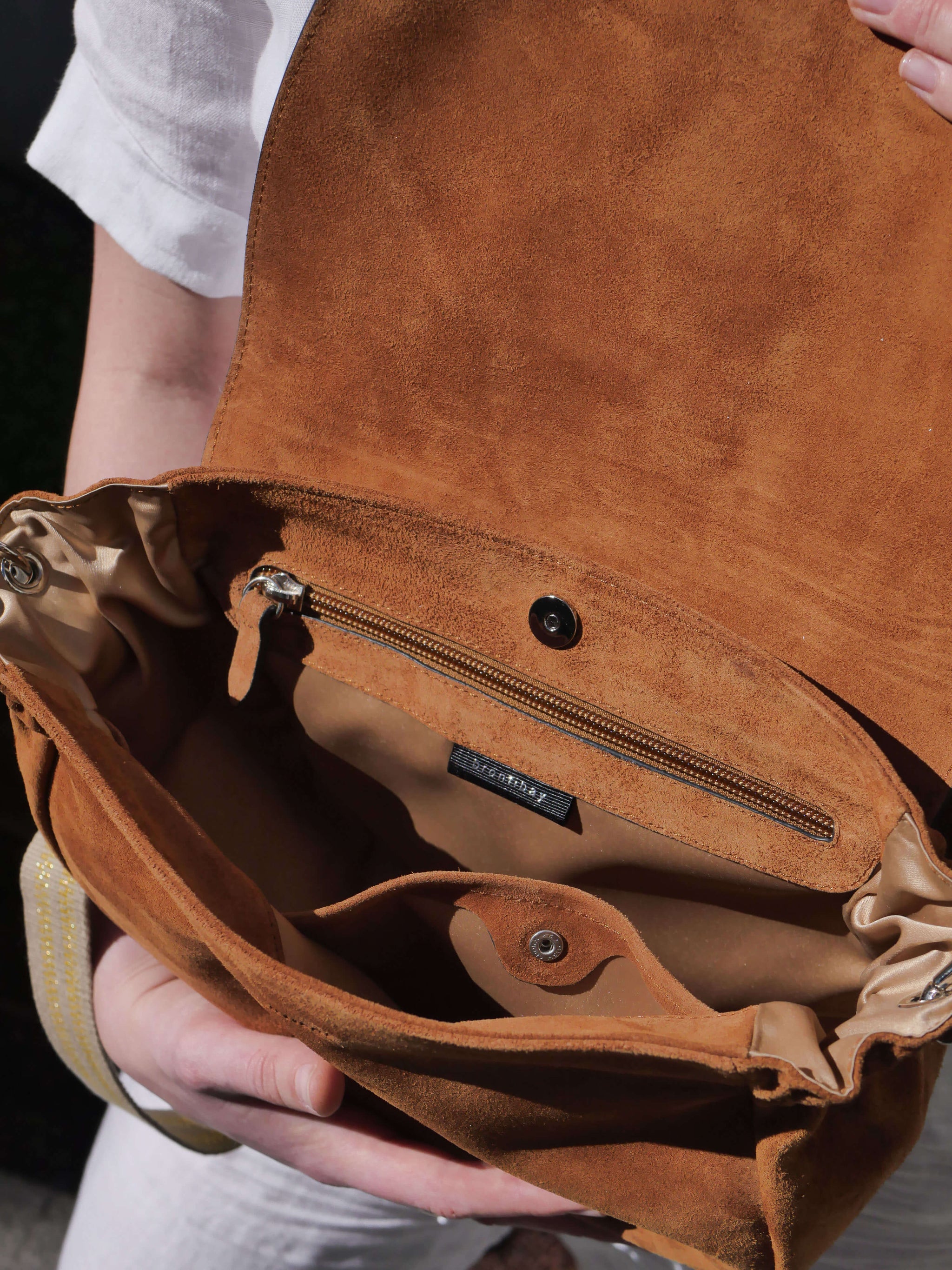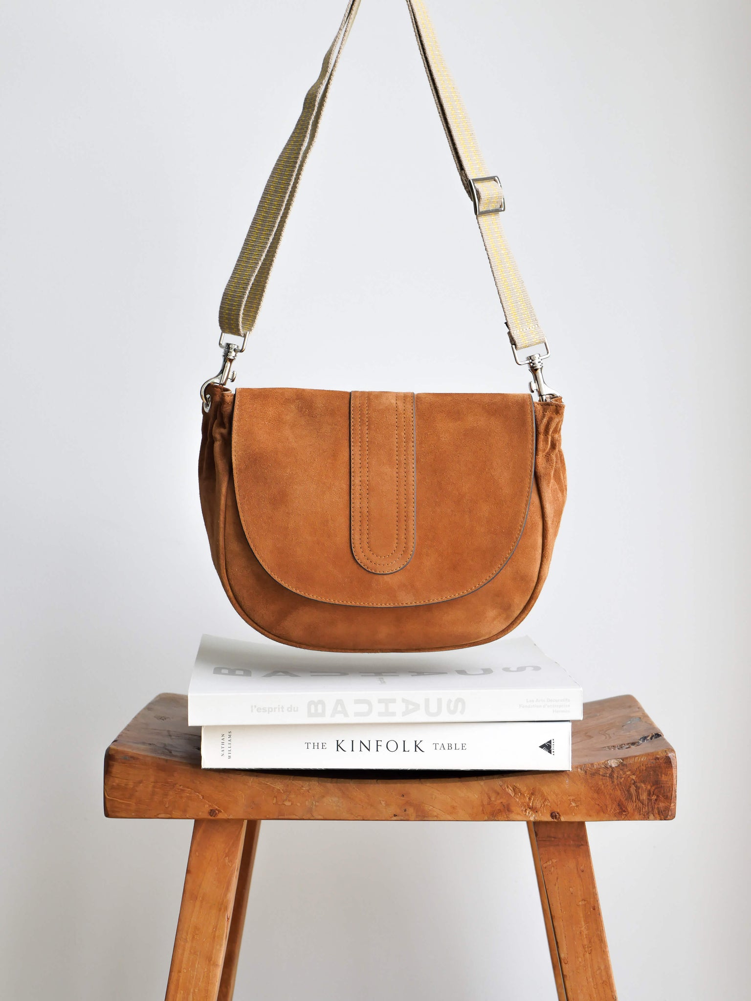 Luxe et soyeux, un mélange chatoyant de couleurs vives. Inspiré des années 70, notre sac à rabat en daim Janis réinvente le passé tout en conservant le style classique vintage. Porté en bandoulière ou à l'épaule, il est doté de deux poches intérieures, d'une bandoulière ajustable et se ferme avec un aimant.