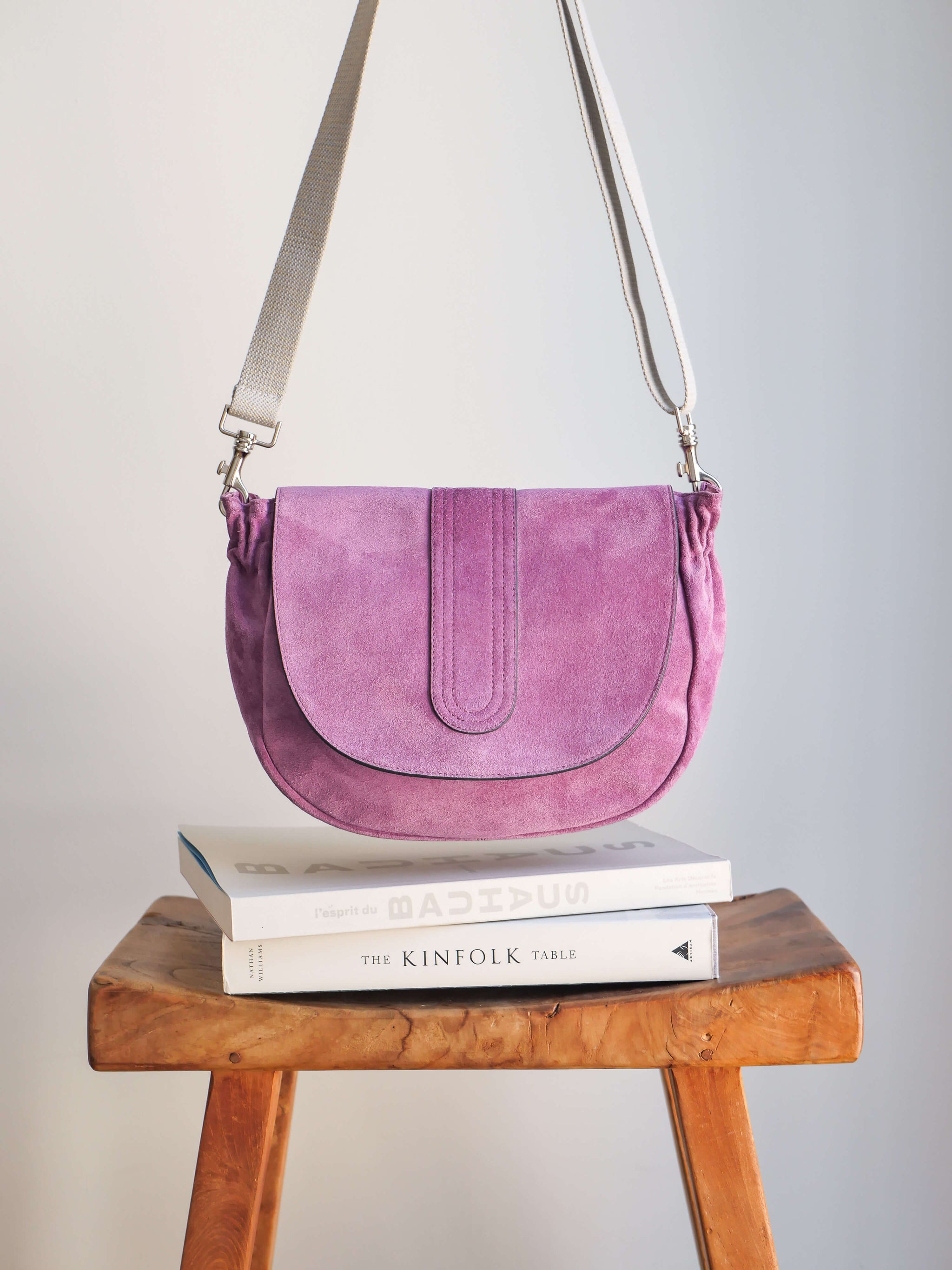 Luxe et soyeux, un mélange chatoyant de couleurs vives. Inspiré des années 70, notre sac à rabat en daim Janis réinvente le passé tout en conservant le style classique vintage. Porté en bandoulière ou à l'épaule, il est doté de deux poches intérieures, d'une bandoulière ajustable et se ferme avec un aimant.