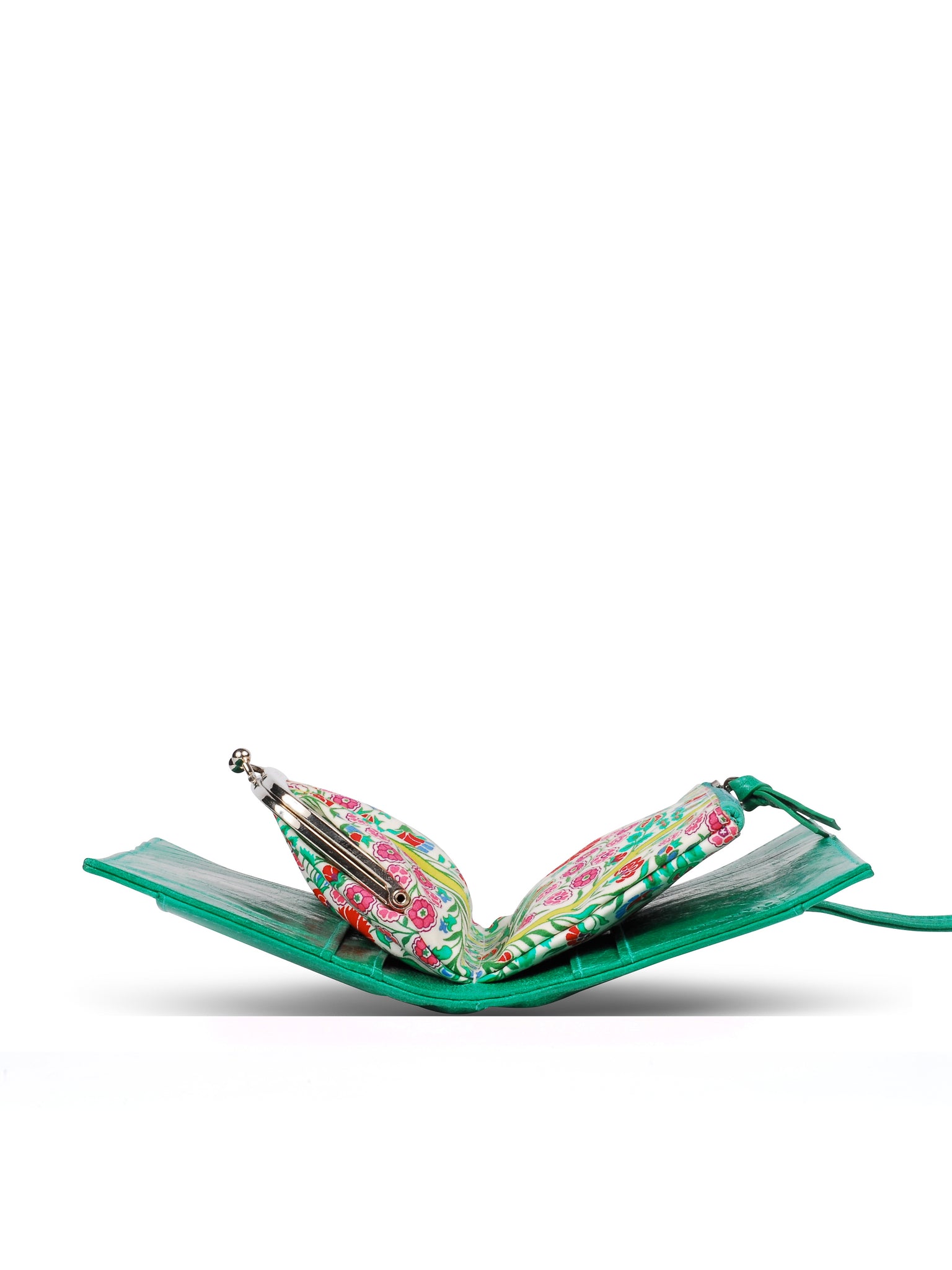 Portefeuille Constantinople — confectionné en cuir pleine fleur, il est complété par un porte-monnaie en coton Liberty avec fermoir métallique. Fonctionnel et bien organisé, il dispose de dix emplacements pour cartes de crédit et de quatre compartiments pour billets ou reçus.