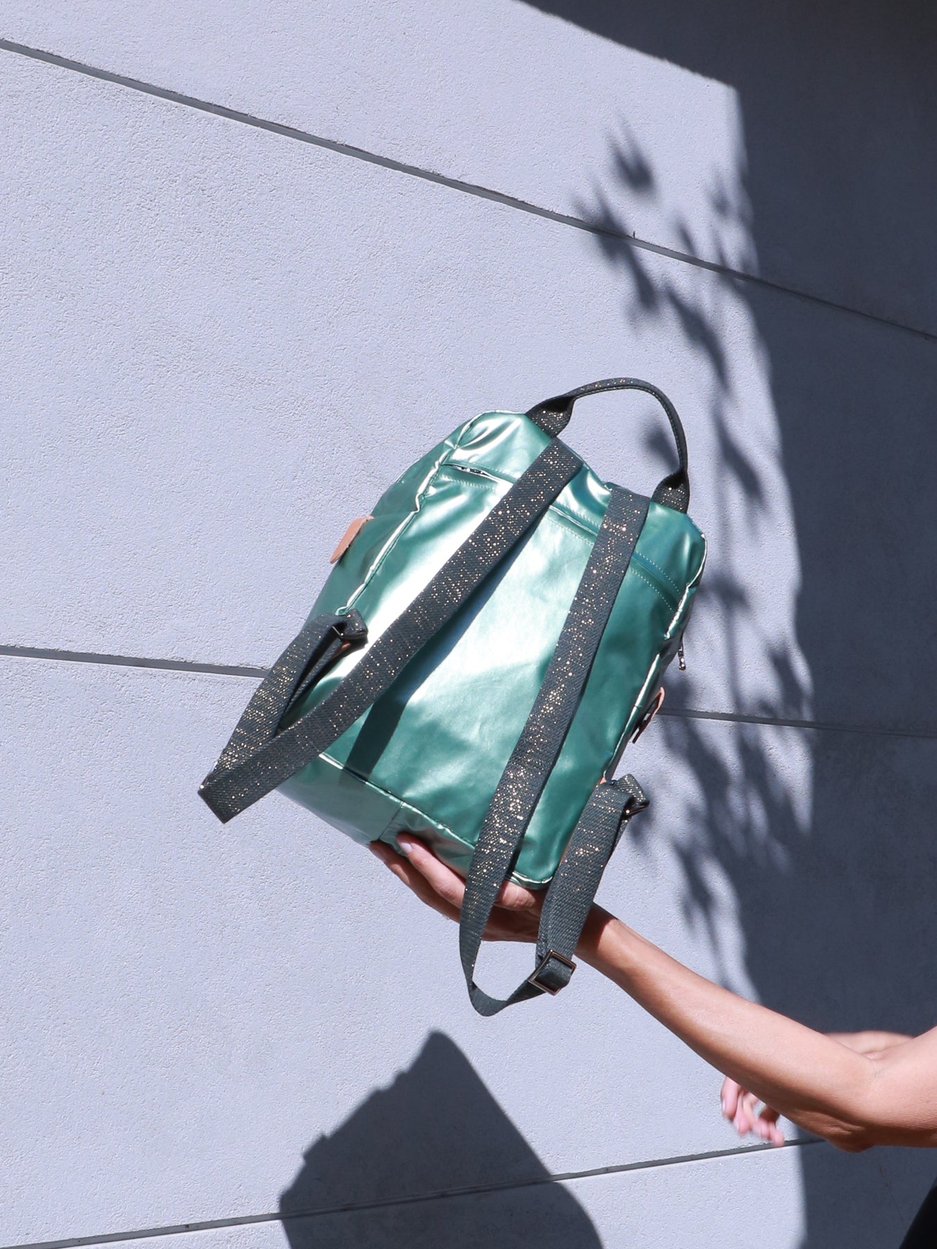 Flashback, le sac à dos Glam métallique pensé pour les aventurières urbaines. Conçu en tissu poly-coton recouvert d’une finition synthétique brillante, il est résistant à l’eau, ultra-léger, souple et pratique. Son design épuré mêle subtilement couleurs et textures, et t’accompagne avec élégance dans le rythme du quotidien comme lors de tes escapades du week-end.