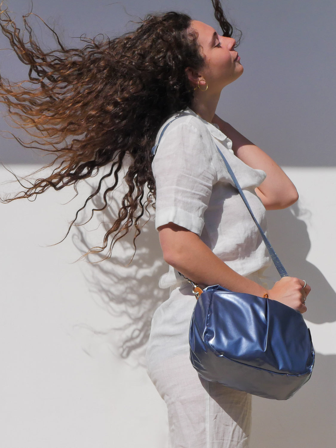 Westside, le sac porté croisé léger comme une plume, doté d’une fermeture à glissière. Il comprend une poche avant pour votre téléphone, une poche intérieure, et une bandoulière tressée de 3 cm de large, ajustable et subtilement saupoudrée de lurex, offrant un porté confortable et pratique pour vos journées urbaines, tout en gardant les mains libres.