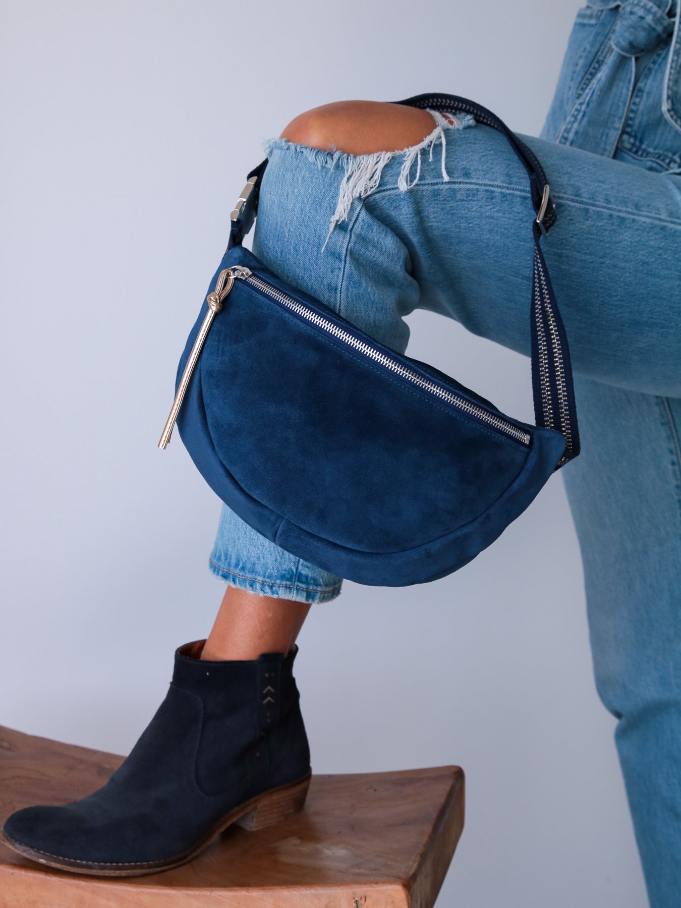 Sakari, the suede calfskin belt bag with full-grain leather detailing.