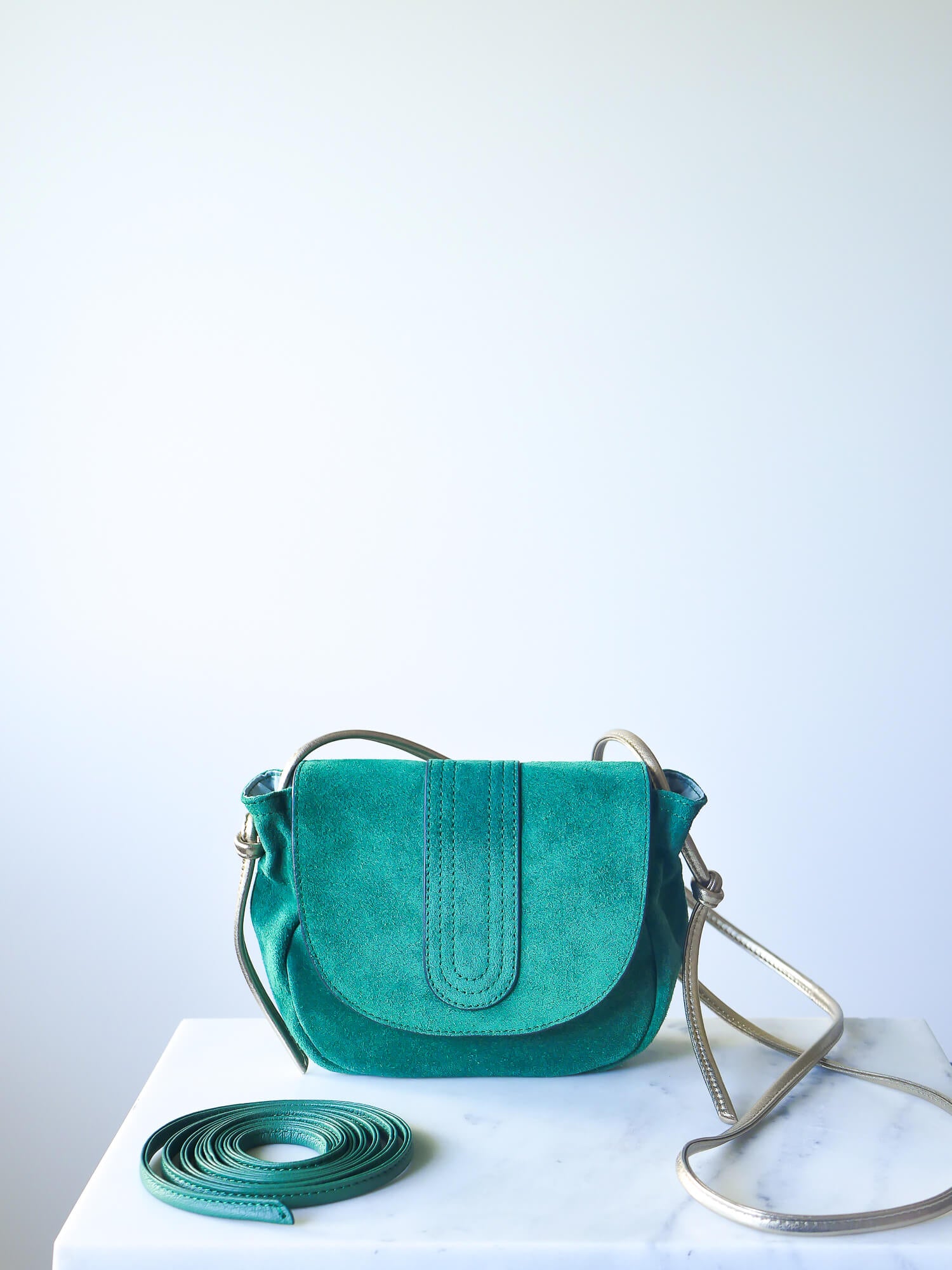 Chrissy, mini-sac à rabat en daim avec ces deux anses: une en cuir doré et une en cuir assorti à la couleur de daim. Riche et soyeux, un kaléidoscope de couleurs intenses. Inspiré des années 70, notre Chrissy réinventant le passé et réhabilitant le style classique vintage. Porté croisé ou épaule, doublé satin avec une poche intérieure, bandoulière réglable et fermer avec un top magnétique.