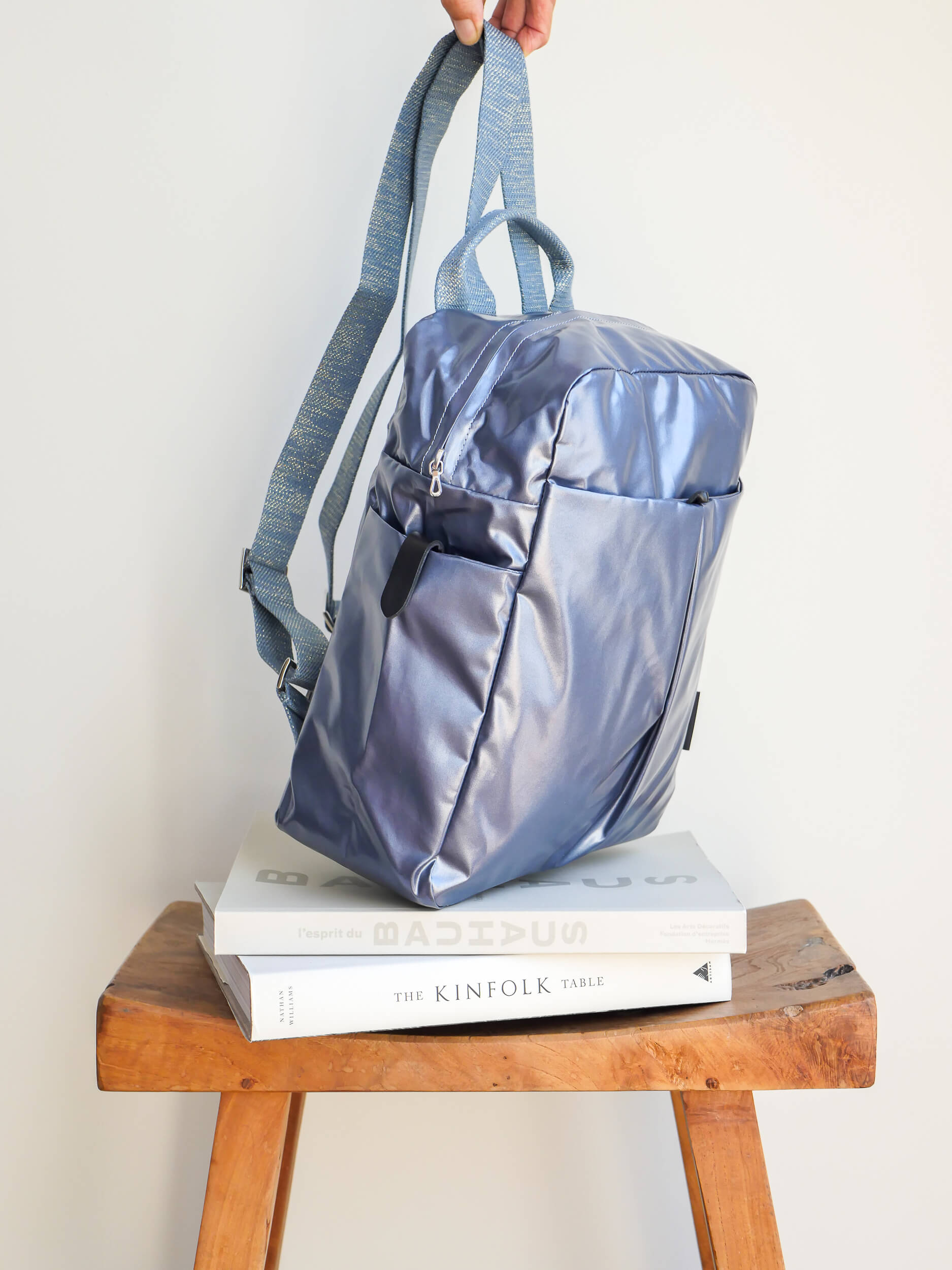 Flashback, le sac à dos Glam métallique pensé pour les aventurières urbaines. Conçu en tissu poly-coton recouvert d’une finition synthétique brillante, il est résistant à l’eau, ultra-léger, souple et pratique. Son design épuré mêle subtilement couleurs et textures, et t’accompagne avec élégance dans le rythme du quotidien comme lors de tes escapades du week-end.