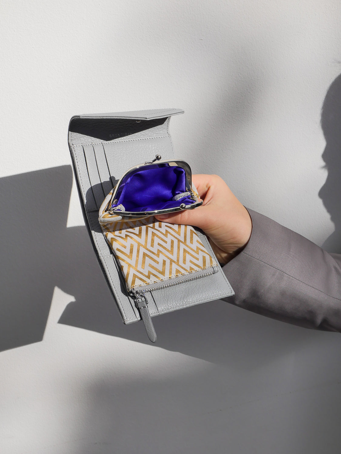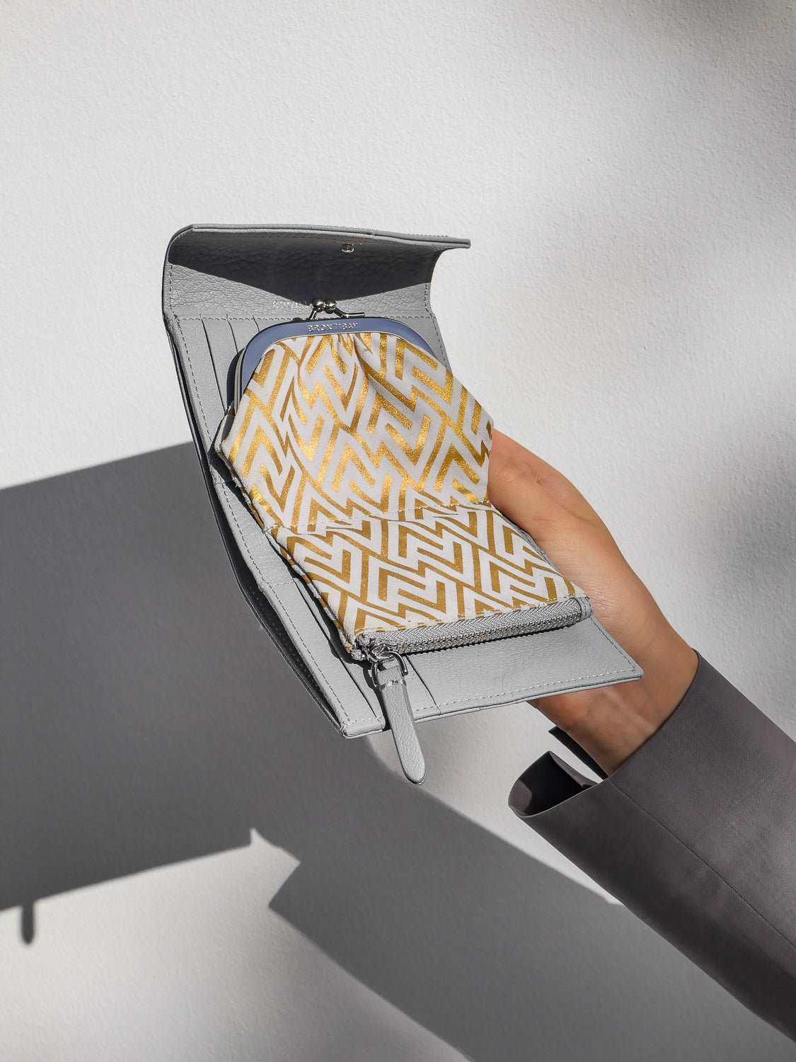 Pearl, emblématique et exclusif portefeuille "enveloppe" vu par Brontibay, en cuir pleine fleur rehaussée d'un porte-monnaie à fermoir métallique en daim Zigzag. Contient 6 encoches pour cartes de crédit et 4 encoches pour notes ou reçues. Pearl, votre complice au quotidien et gardien de vos secrets.