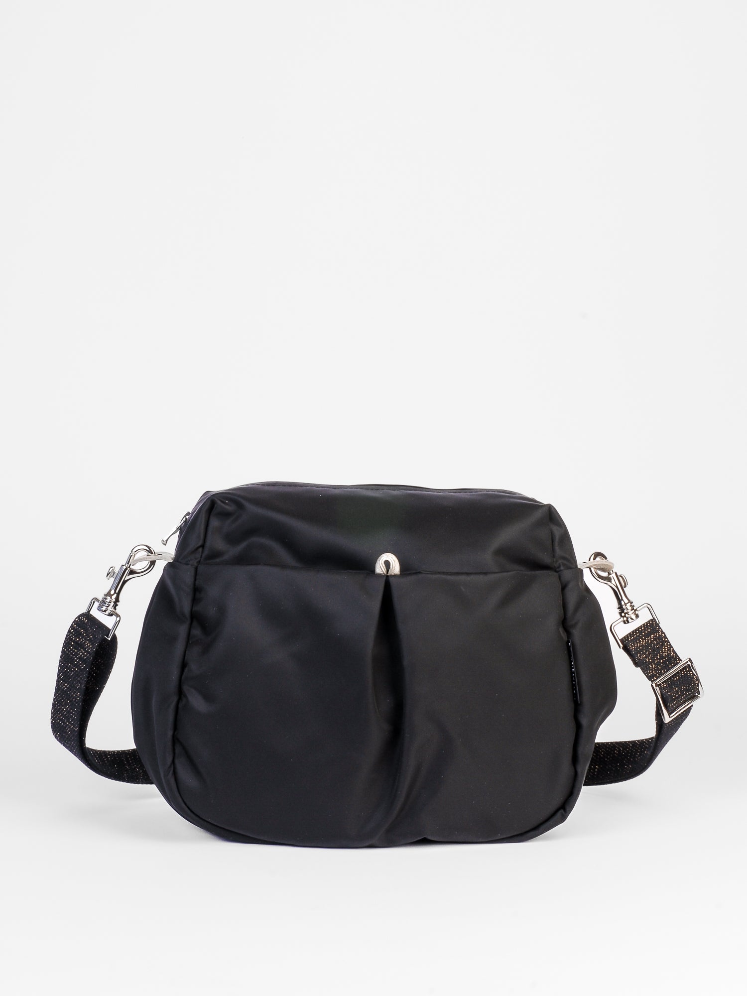 Le sac Ravello défie la simplicité du nylon satiné avec une allure sculpturale et des détails pensés pour la vie urbaine. Fermeture zippée pour garder vos essentiels en sécurité, poches intérieures et extérieures pour une organisation sans effort. La bandoulière tressée en lurex, large et affirmée, signe une élégance moderne. Léger et prêt à vous suivre partout.